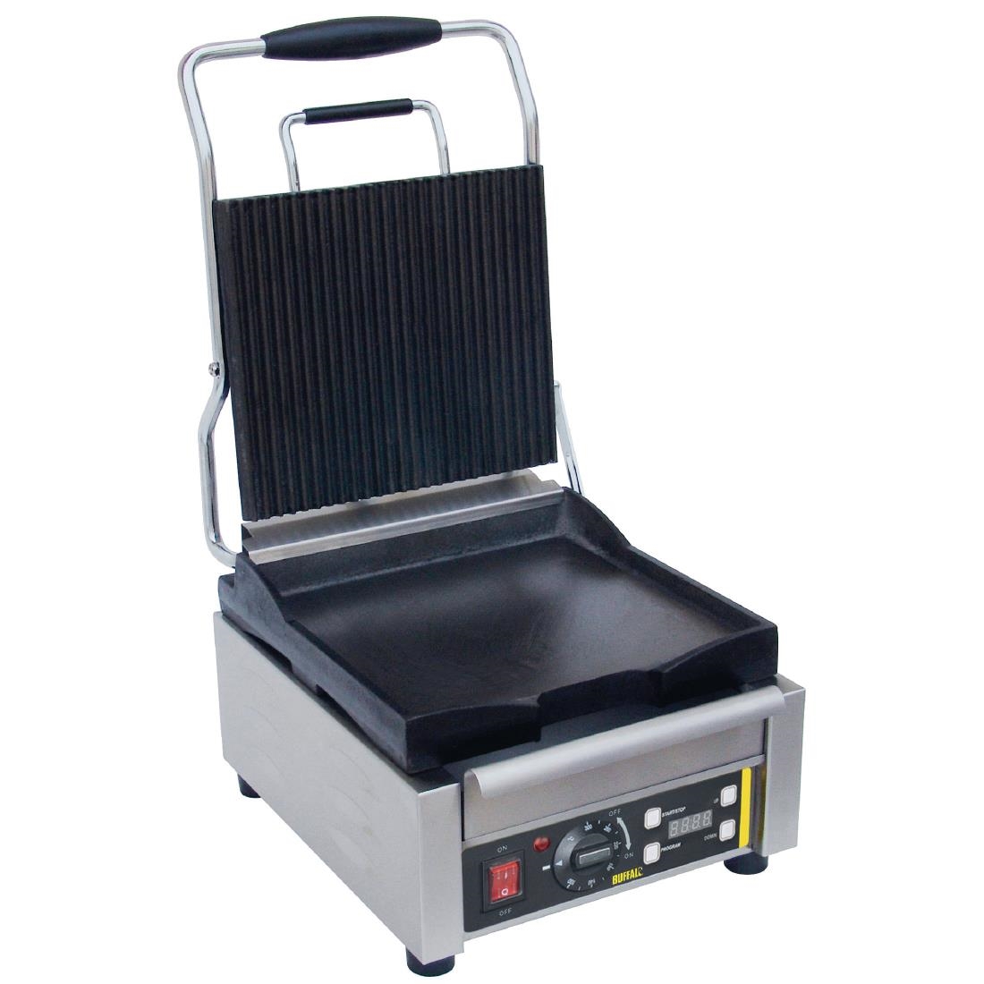 Great for busy hotels and restaurants, this heavy-duty single contact grill from Buffalo is fast to heat up and has variable temperature control for maximum functionality. Robustly designed, it has cast iron plates and a satin stainless steel finish (scratch resistant) to ensure long-term use. The addition of a programmable timer and audible alarm then makes monitoring cooking in a busy kitchen much easier.